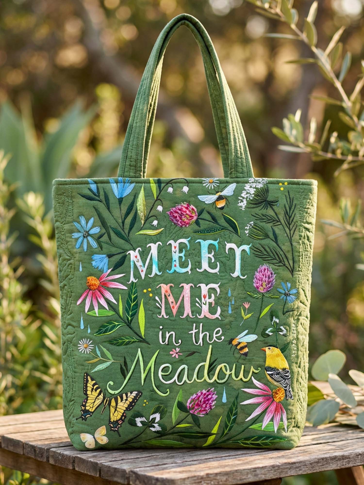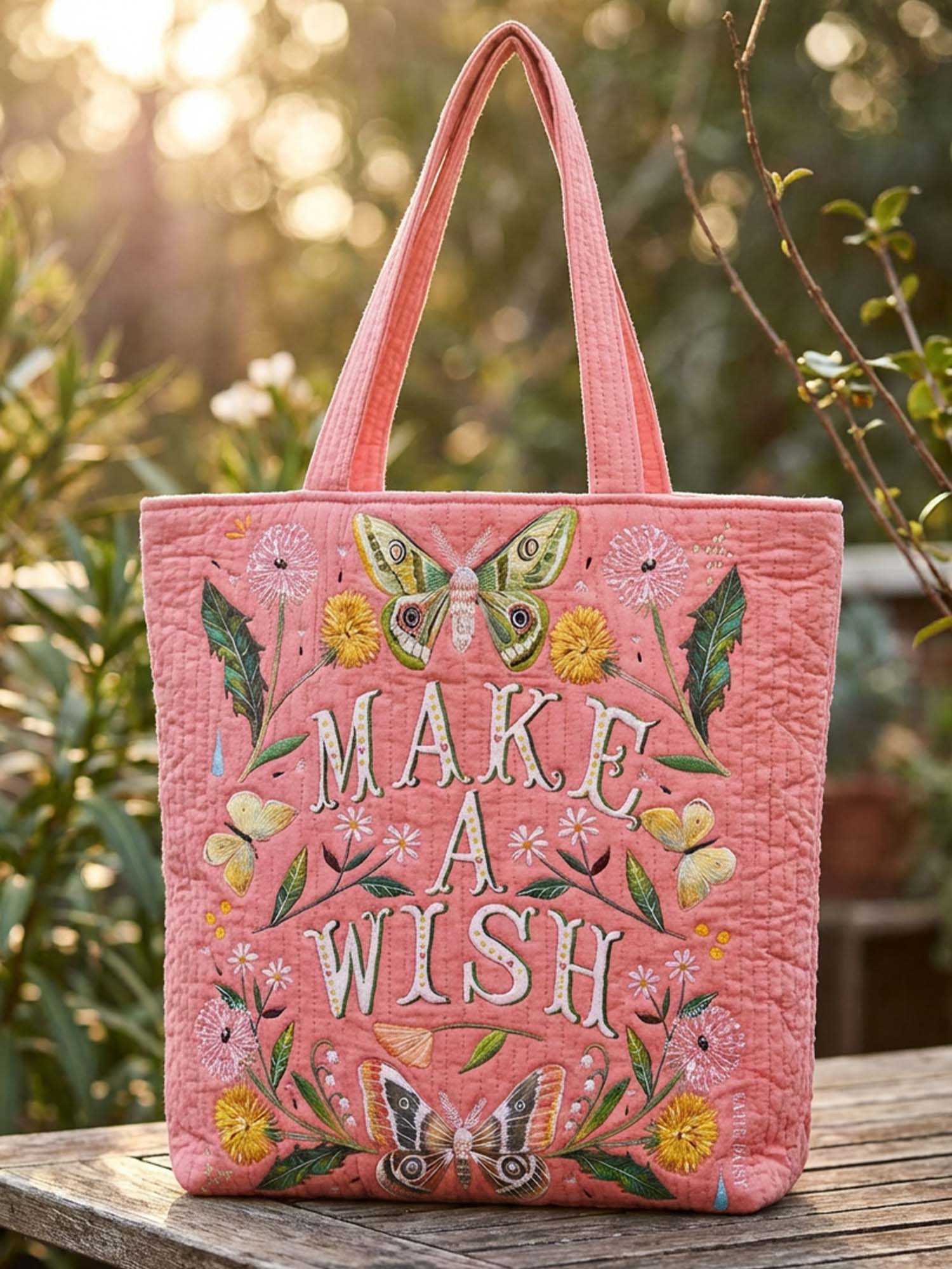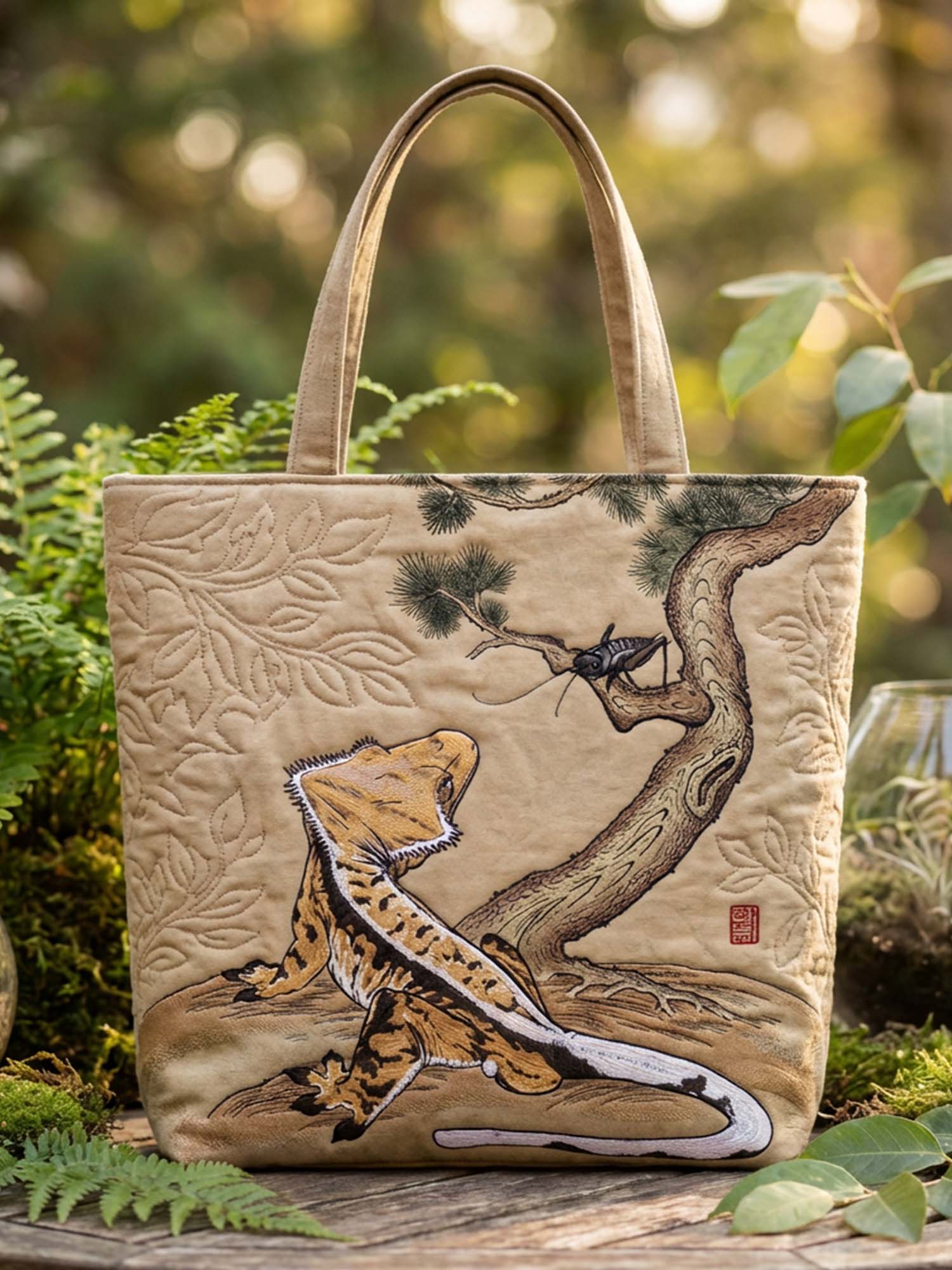 Retro Oriental Gecko And Flower Quilted Tote Bag