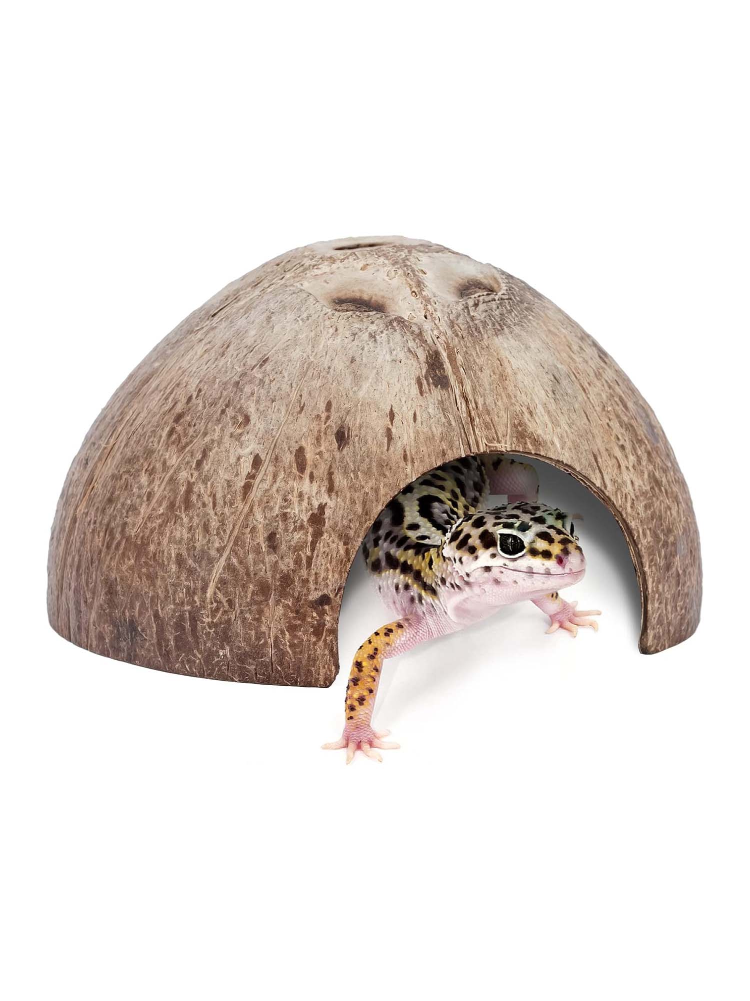 2 Pack Natural Coconut Reptile Hideouts, Lizard, Spider and Aquarium Fish Hide Cave