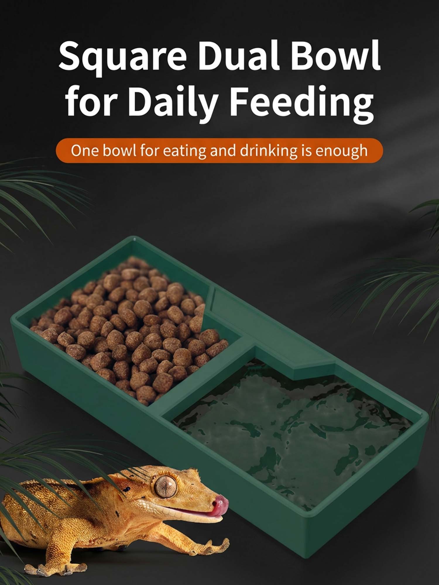 Rectangular Double-Compartment Feeding and Water Bowl for Reptiles