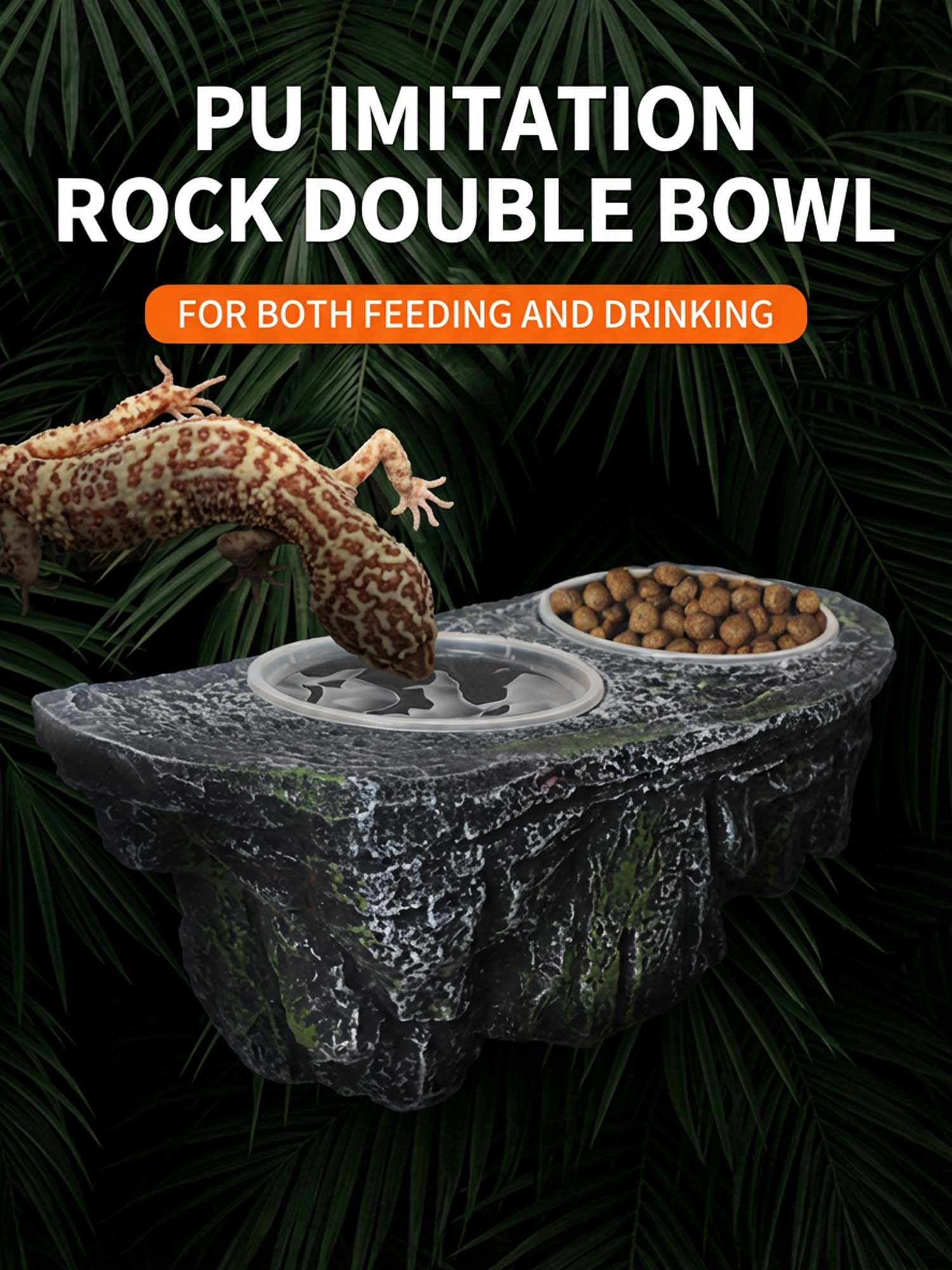 Rock-Style Reptile Feeding & Water Bowl — Dual Dish With Strong Suction Mount