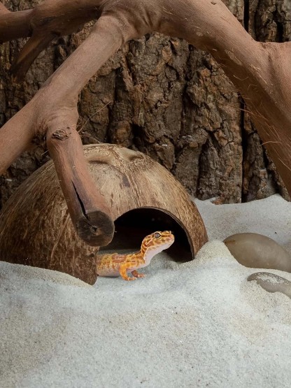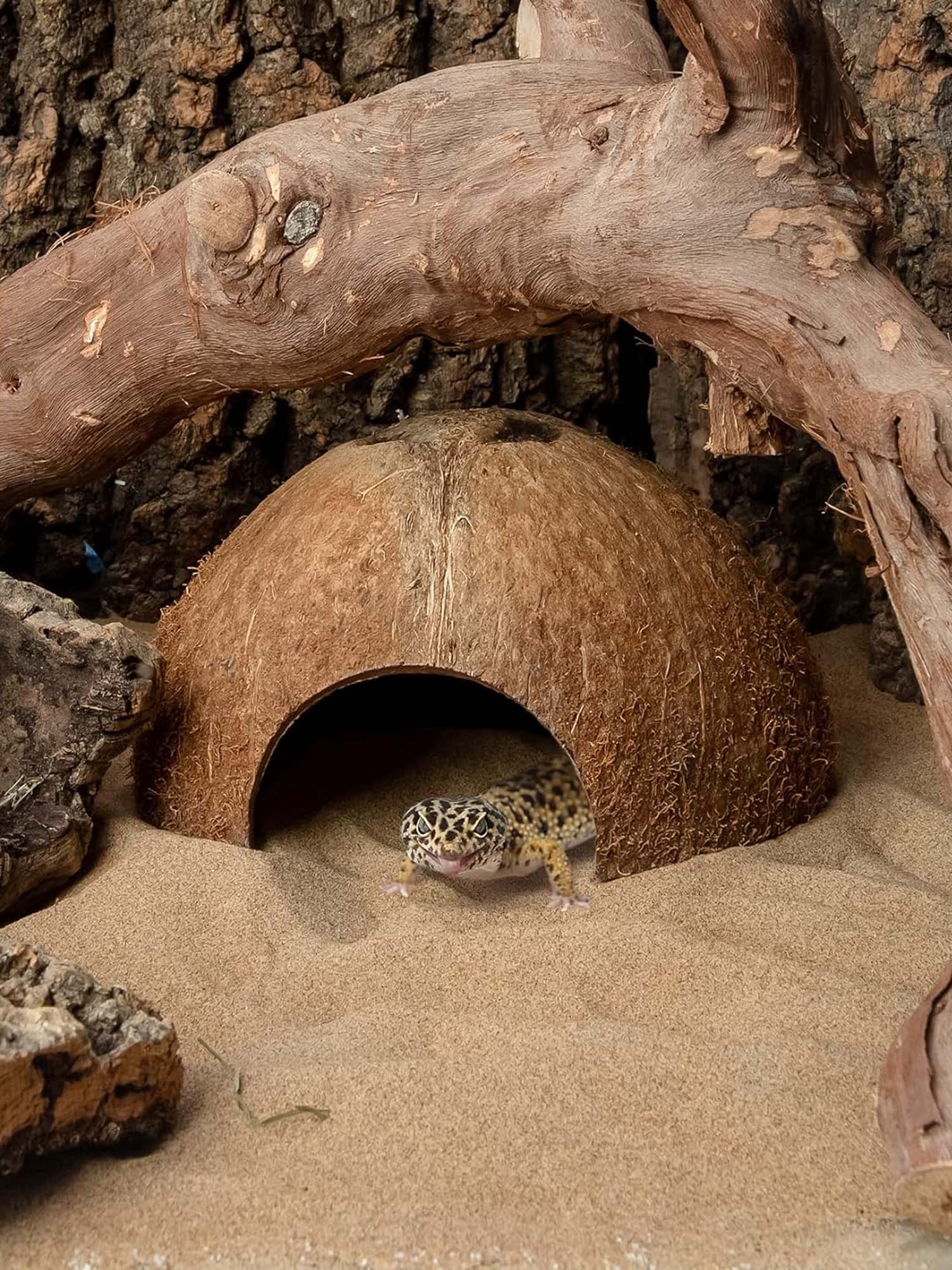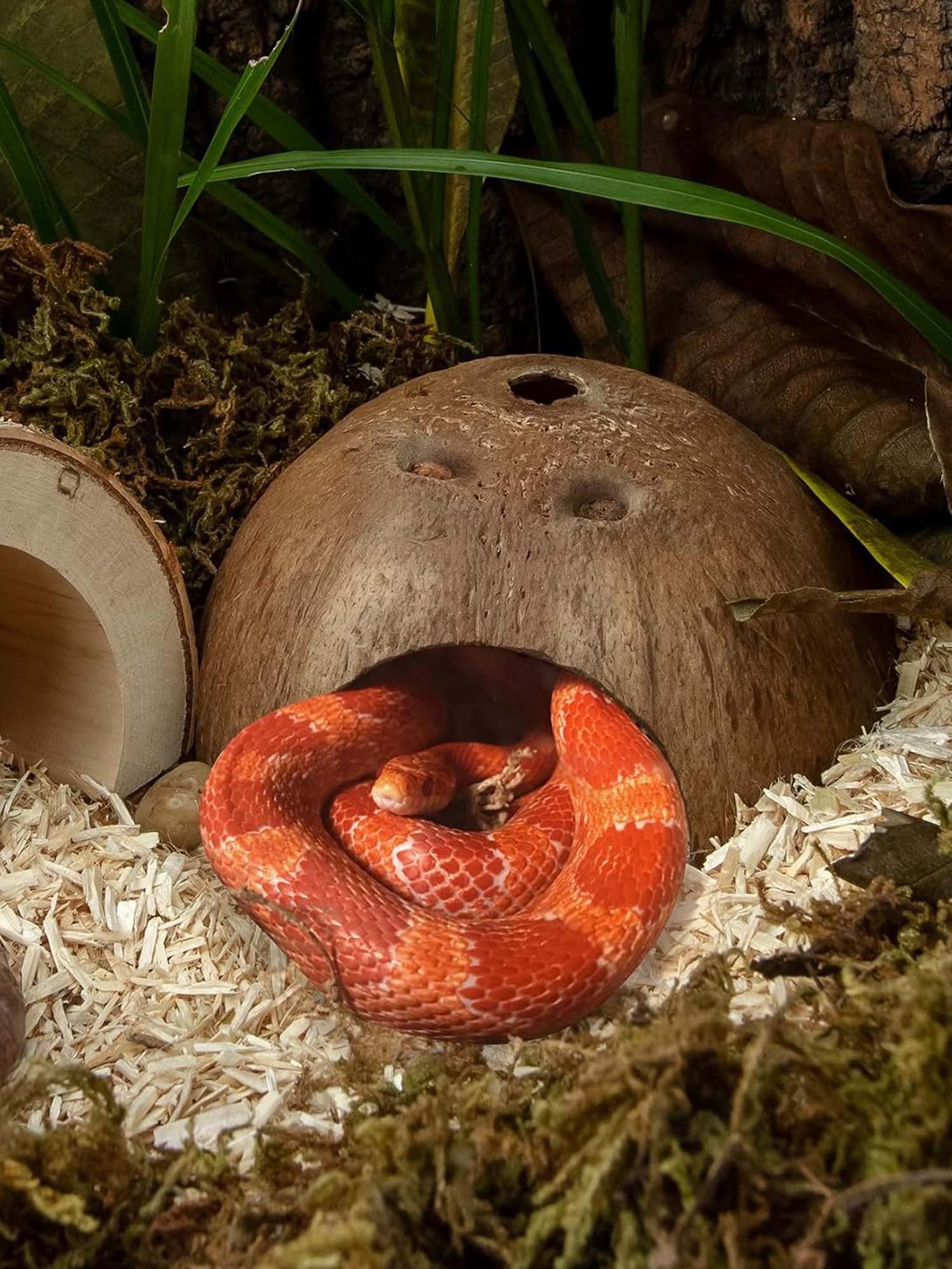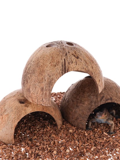 The organic coconut shell texture blends seamlessly into rocks, plants, and décor — creating a realistic, nature-inspired environment your pets will love exploring.