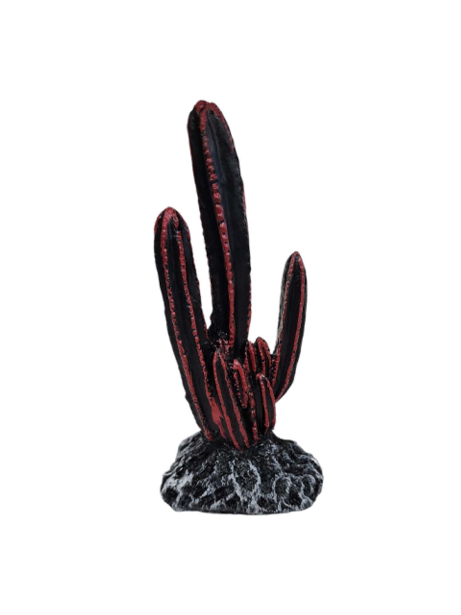 Create a dramatic desert theme inside your terrarium with this Black Resin Cactus Decor with Red Spines.