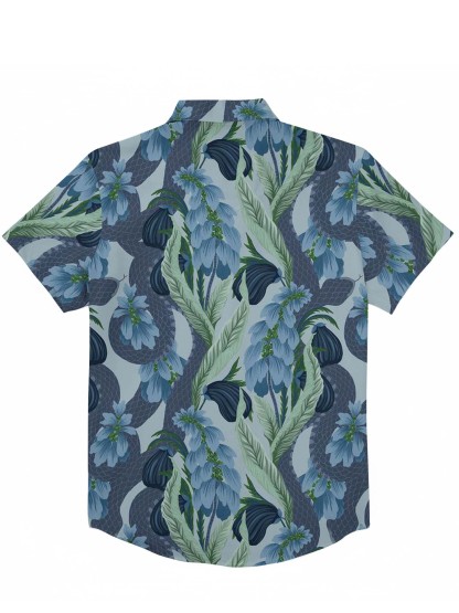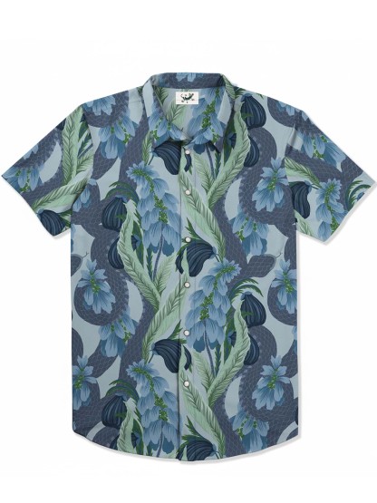 Blue Snake And Leaves Print 100% Cotton Shirt