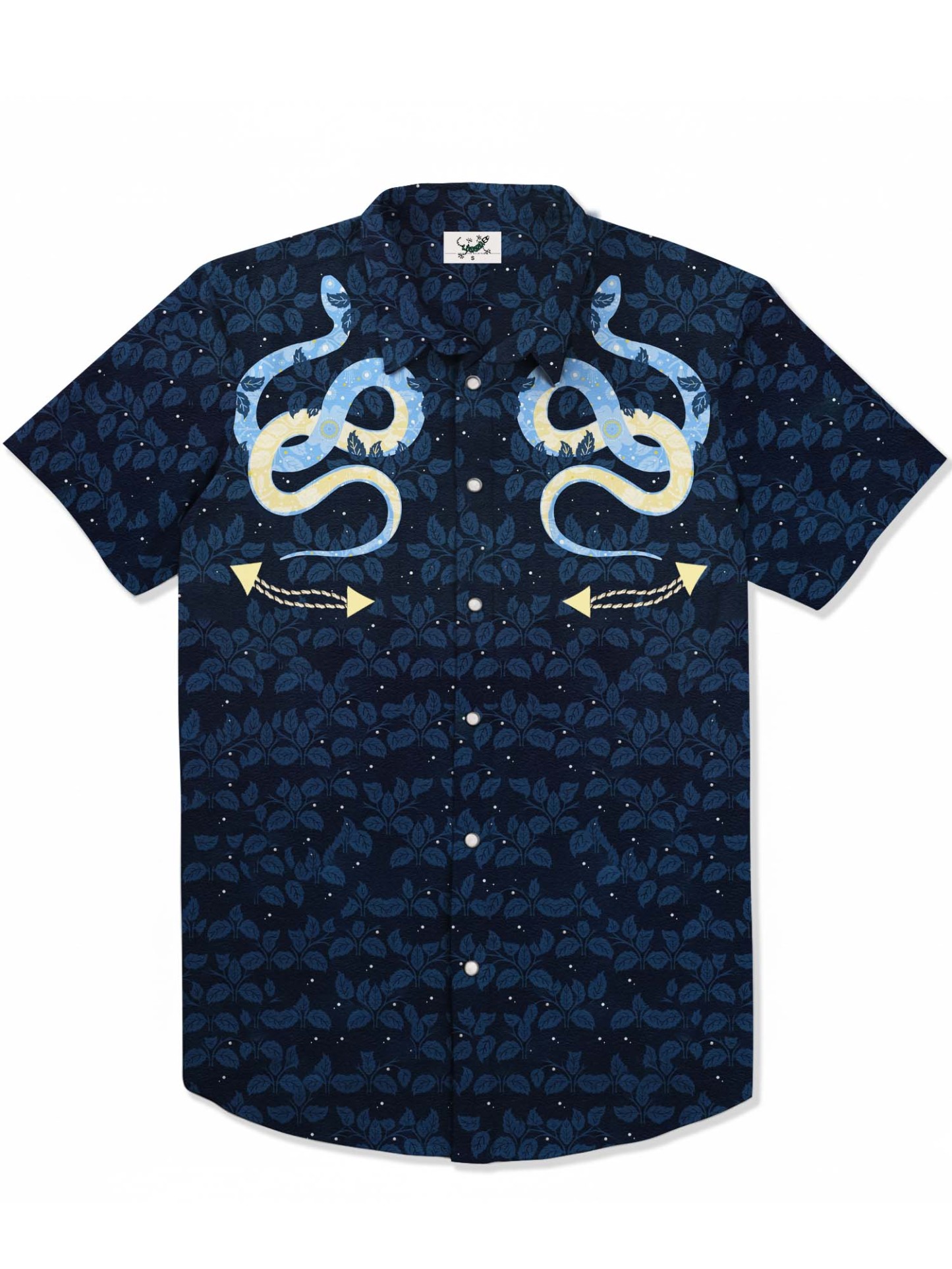 Blue Snake And Leaves Print 100% Cotton Shirt