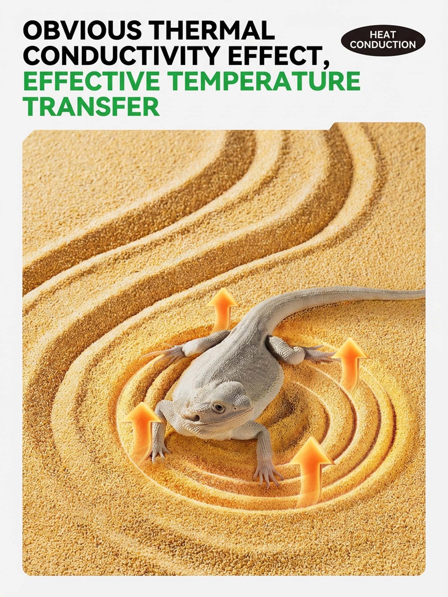 This sand absorbs and transfers heat effectively, allowing your reptile to warm up comfortably while helping maintain a stable temperature inside the habitat.