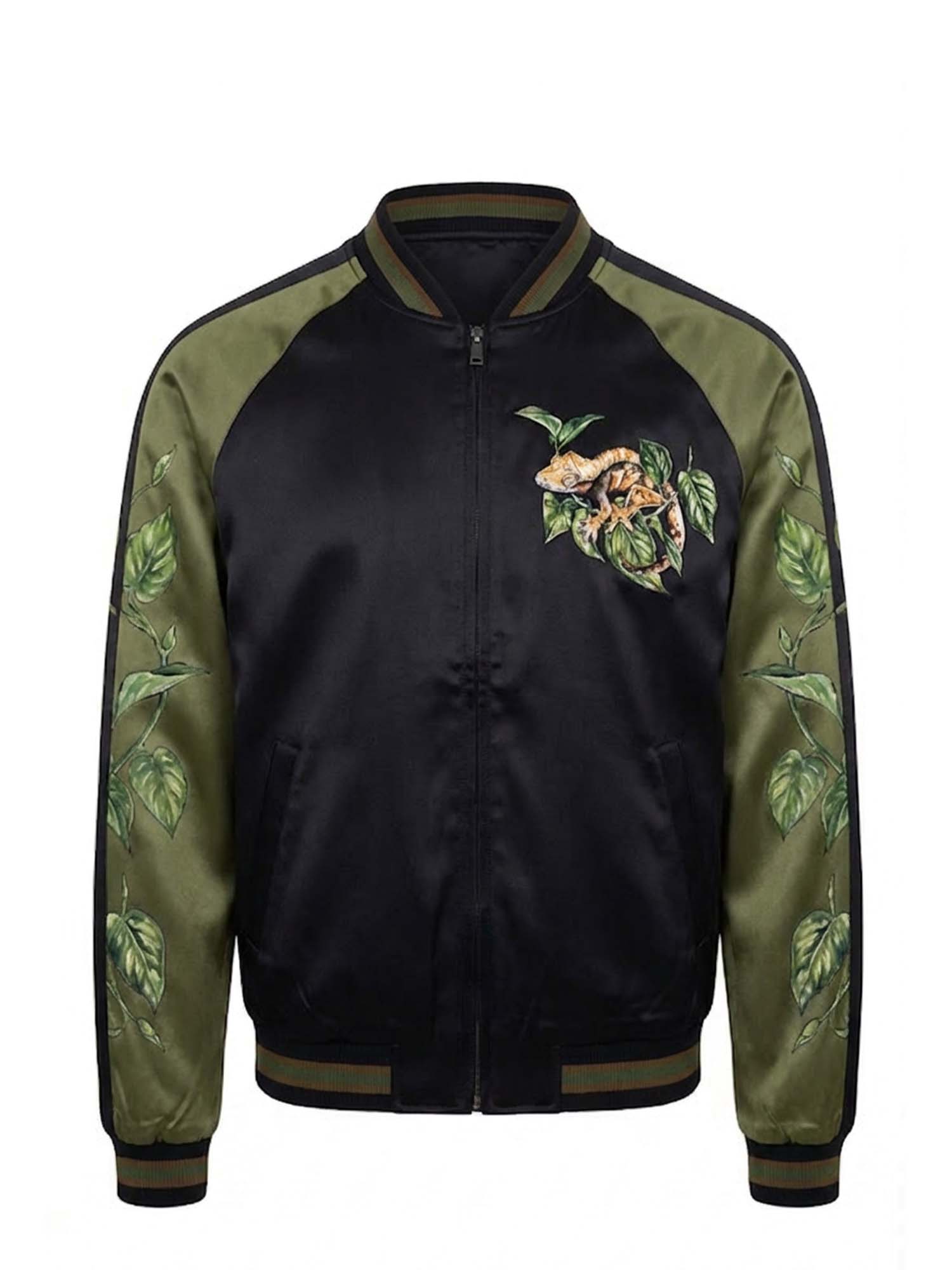 The raglan sleeve cut allows natural movement while preserving a structured shape. Built on traditional varsity jacket craftsmanship, this piece integrates modern graphic expression for versatile everyday wear.