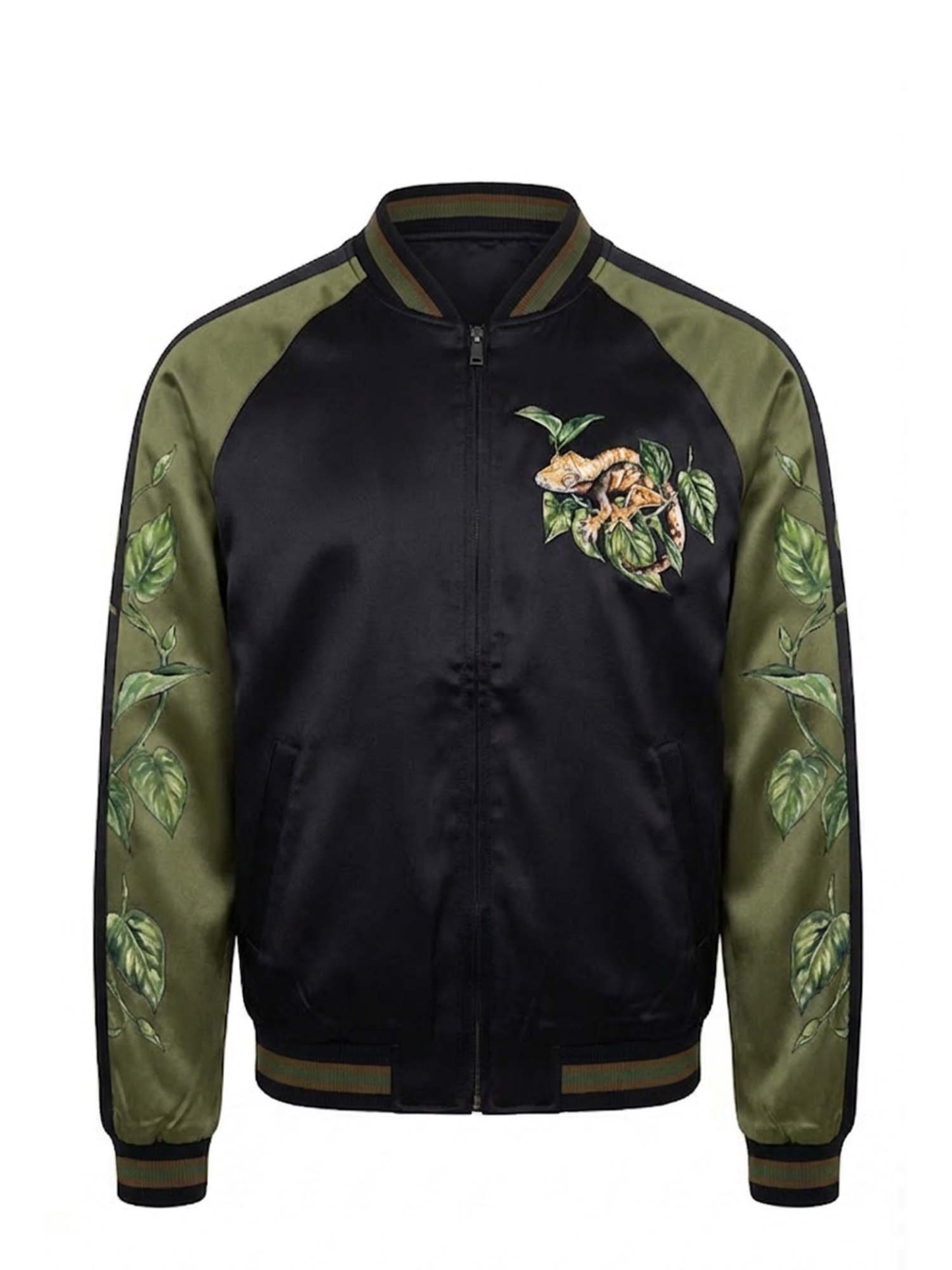 - Rib-knit collar, cuffs, and hem for a secure fit and a classic varsity silhouette