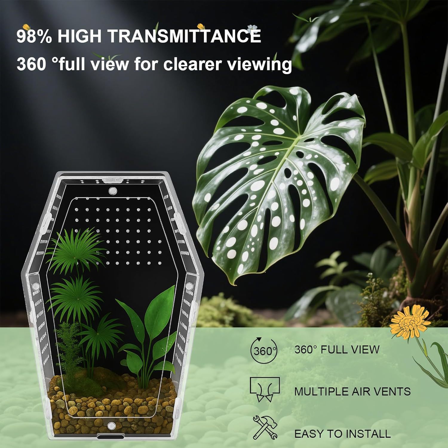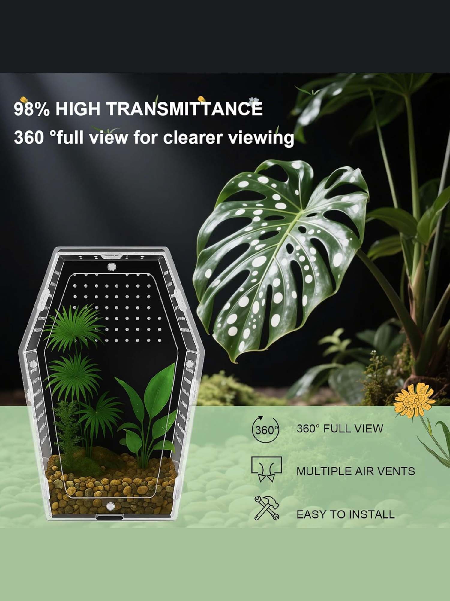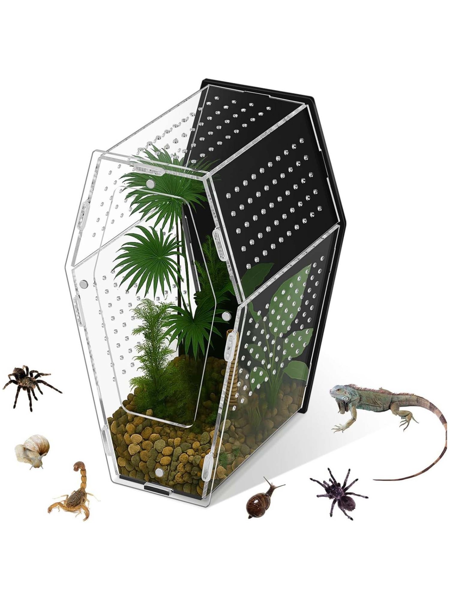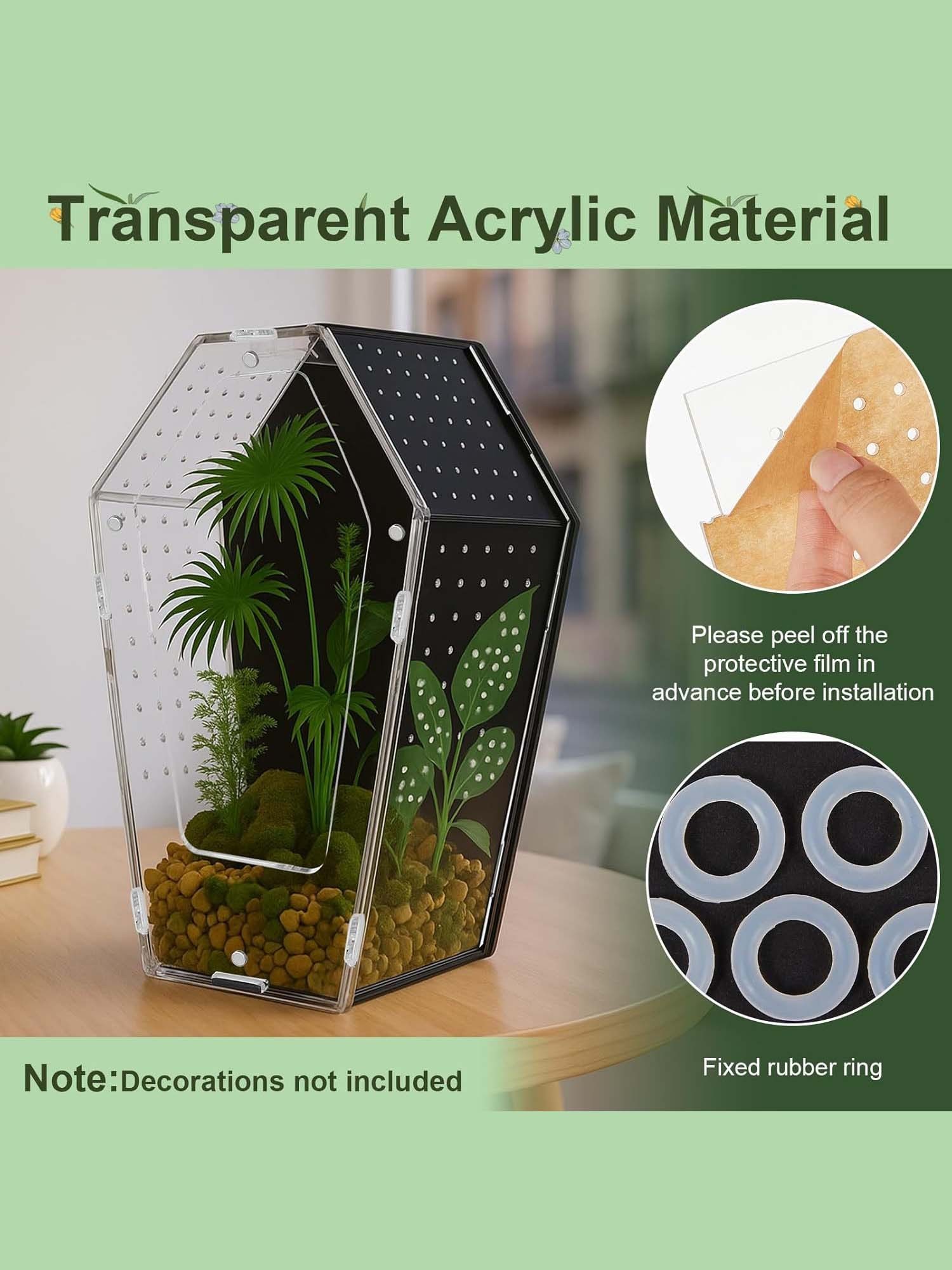 Made from premium transparent acrylic, the enclosure offers a full 360° viewing experience — so you can observe natural behavior without distortion. It looks sleek, clean, and modern… with a gothic twist.