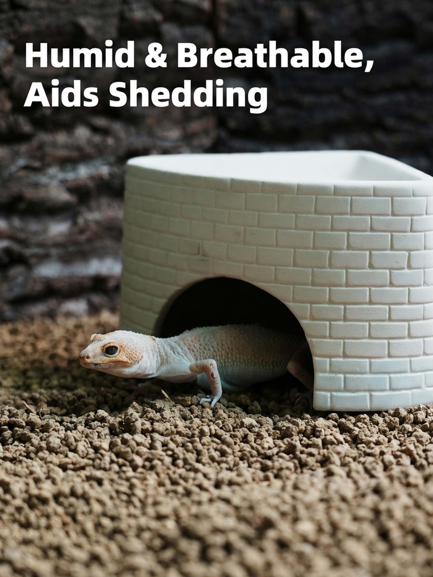 The ceramic body gently absorbs and releases moisture, making it ideal for humid hide setups and supporting healthy shedding.