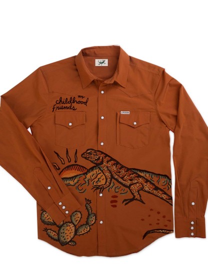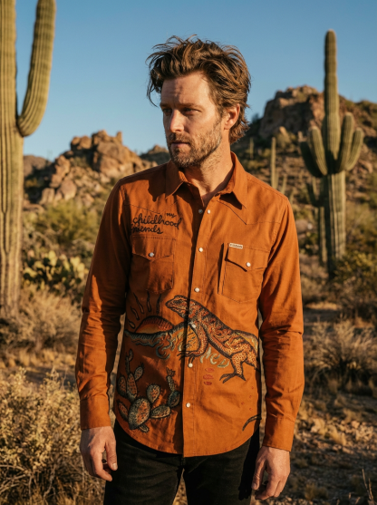 Lizard And Cacti In The Desert 100% Cotton Long Sleeves Shirt