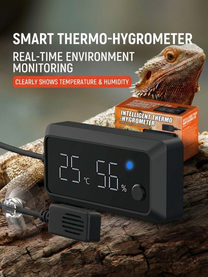 This smart digital thermometer and hygrometer is designed for reptile enclosures to provide real-time temperature and humidity monitoring. By helping you maintain proper environmental conditions, it supports your reptile’s digestion, immunity, skin health, and overall well-being.