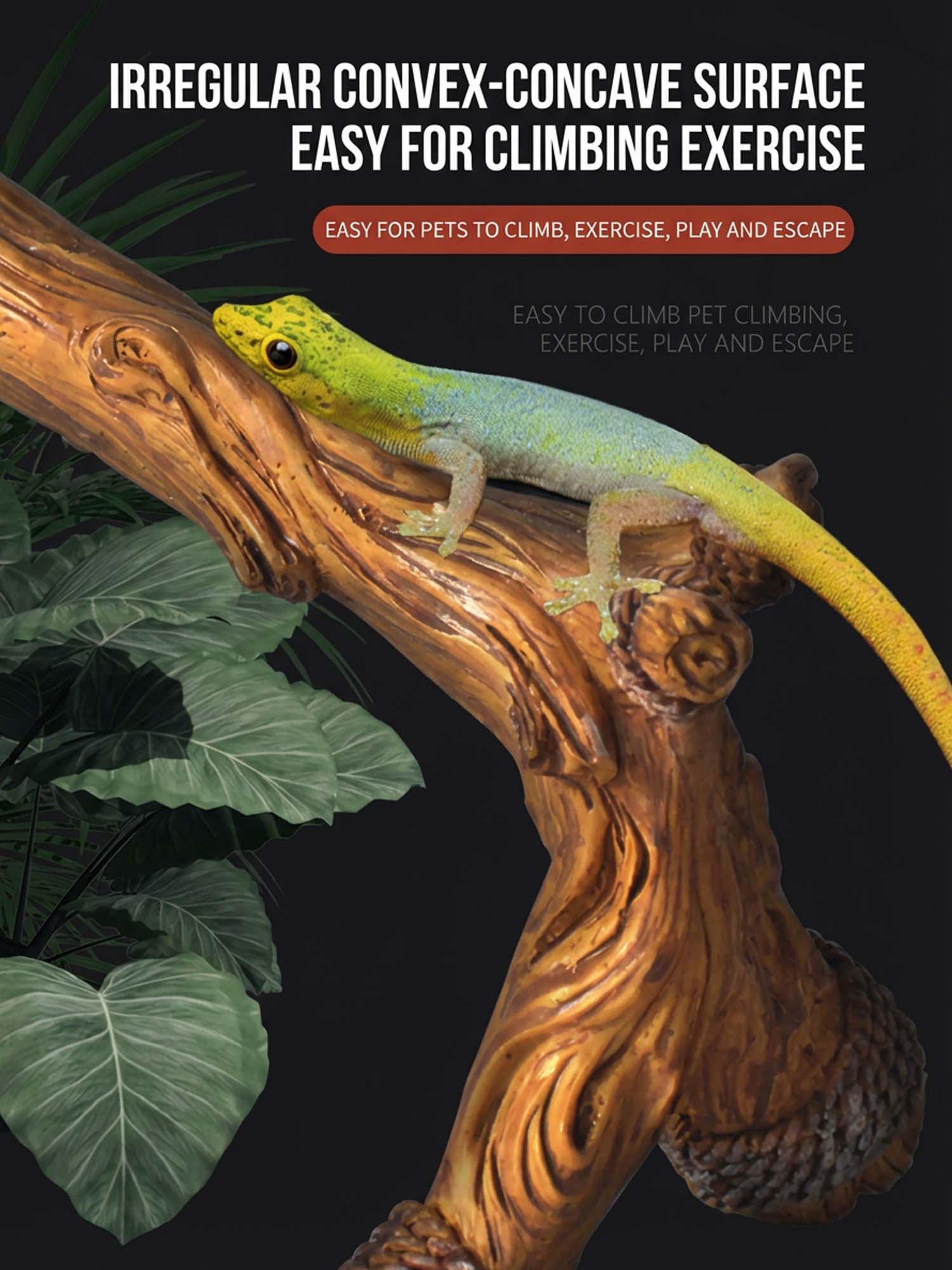 Bring your reptile’s enclosure to life with this realistic resin climbing structure. Designed to replicate natural branches and hanging ropes, it provides a multi-functional environment for climbing, resting, basking, and hiding. Perfect for geckos, lizards, frogs, turtles, snakes, and other small reptiles.
