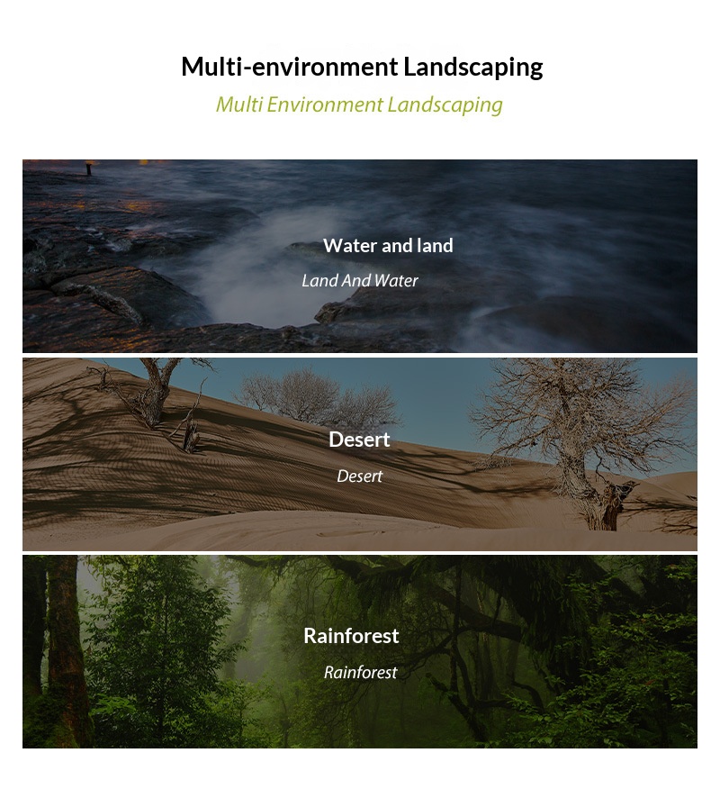: Suitable for aquatic, desert, and rainforest habitats
