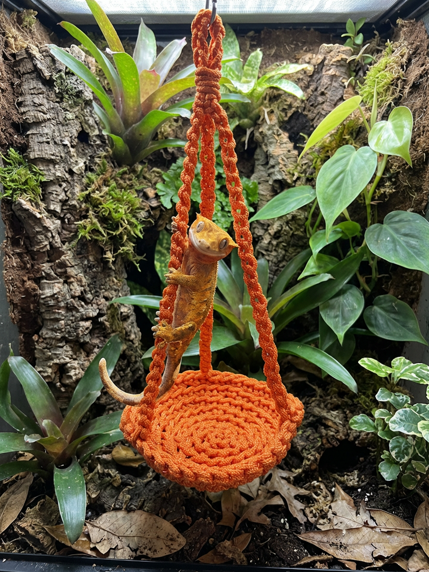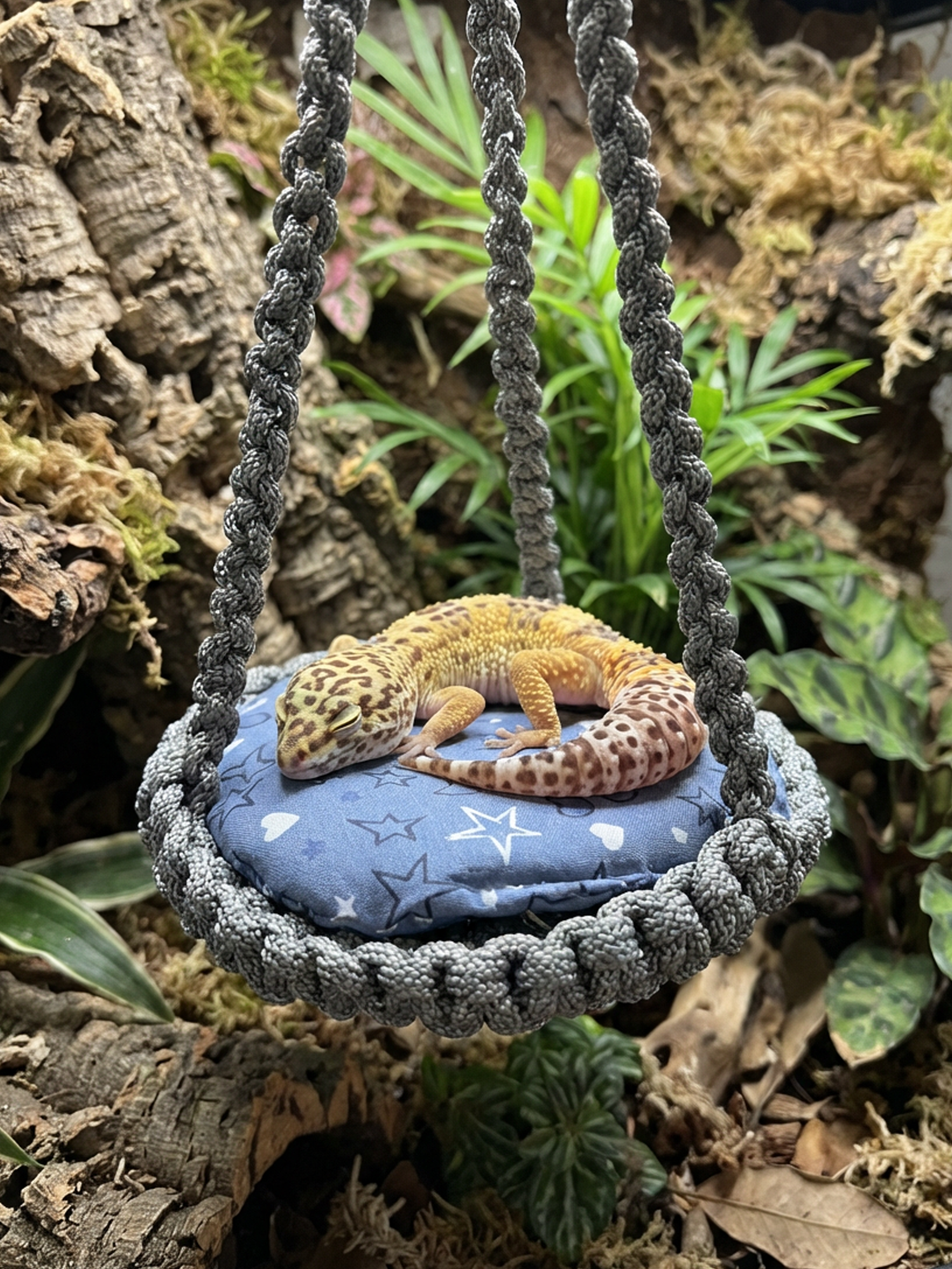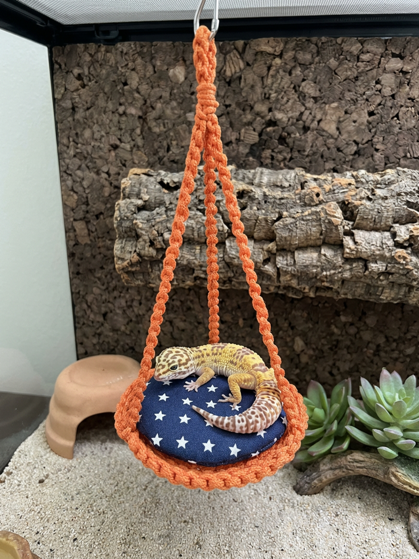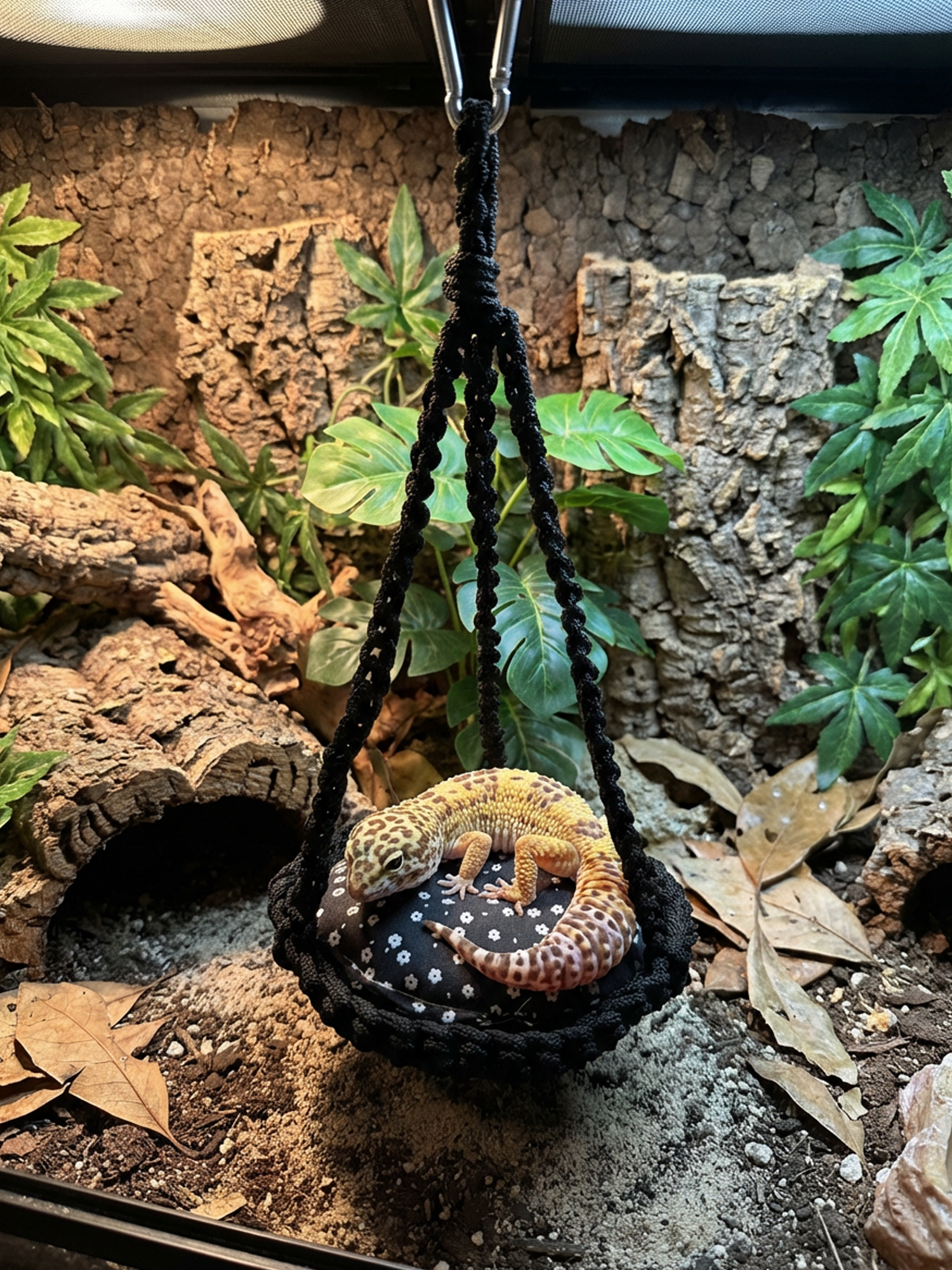 Add enrichment and vertical space to your gecko’s habitat with this cozy woven hammock. Designed for arboreal reptiles, this round gecko hammock creates a comfortable place to climb, rest, and observe their surroundings — while adding a stylish natural look to your terrarium décor.