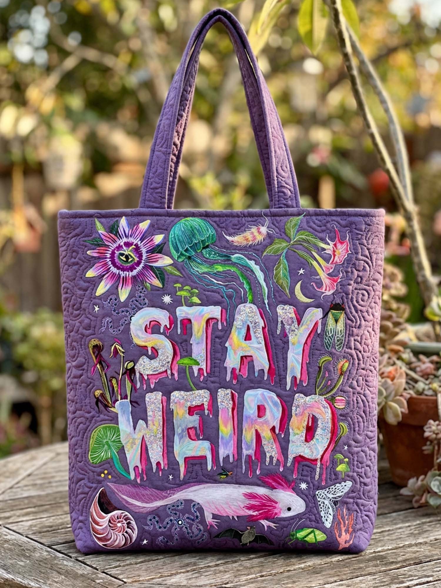 Looking for a tote bag that's both fun and functional? Our quilted tote bag is thoughtfully designed to make everyday carrying easier-while adding a fun, festive touch to your look. Perfect for everyday use or seasonal outings, this bag combines sturdy construction with charming prints to brighten up any outing. It's the perfect combination of practicality and personality!